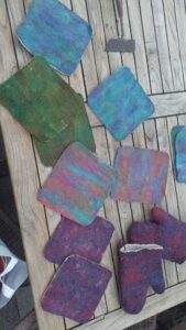 Pannenlappen, ovenwanten en onderzetters van 100% wol. Vuilafstotend en werkt perfect!