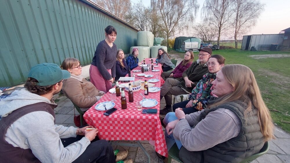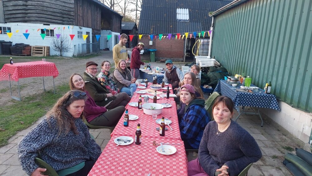 Normaal is de Lammetjesdag altijd de afsluiting van het lammerseizoen, maar die ging dit jaar niet door. Dus organiseerden we een pizzaparty met de lammervrijwilligers als afsluiting. Het was zulk mooi weer, en dat op de 2e dag van de lente, dat we gewoon buiten konden eten!