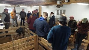 Zoals elk jaar hebben we in de lammertijd weer een hele kudde vrijwilligers. Sommigen al 14 jaar, anderen voor het eerst. We trappen de lammertijd altijd af met een lammerinstructie, om even alle geheugens op te frissen en met borrel na voor de gezelligheid. Clemens gaf de instructie bij de groepshokken, en Tijmen in de kraamstal.